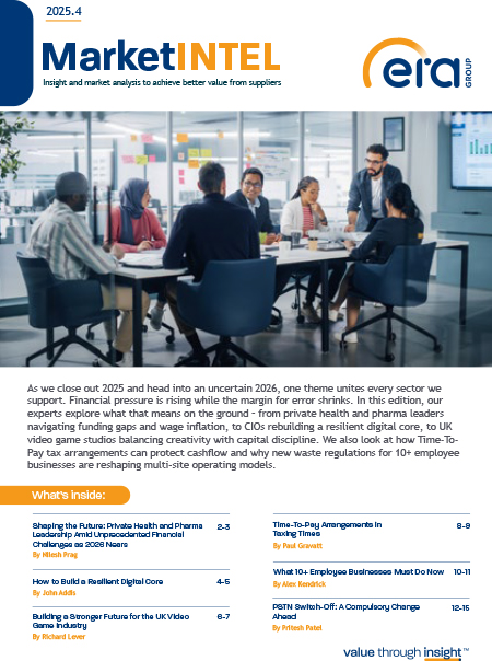 As we close out 2025 and head into an uncertain 2026, one theme unites every sector we support. Financial pressure is rising while the margin for error shrinks. In this edition, our experts explore what that means on the ground – from private health and pharma leaders navigating funding gaps and wage inflation, to CIOs rebuilding a resilient digital core, to UK video game studios balancing creativity with capital discipline. We also look at how Time-To-Pay tax arrangements can protect cashflow and why new waste regulations for 10+ employee businesses are reshaping multi-site operating models.