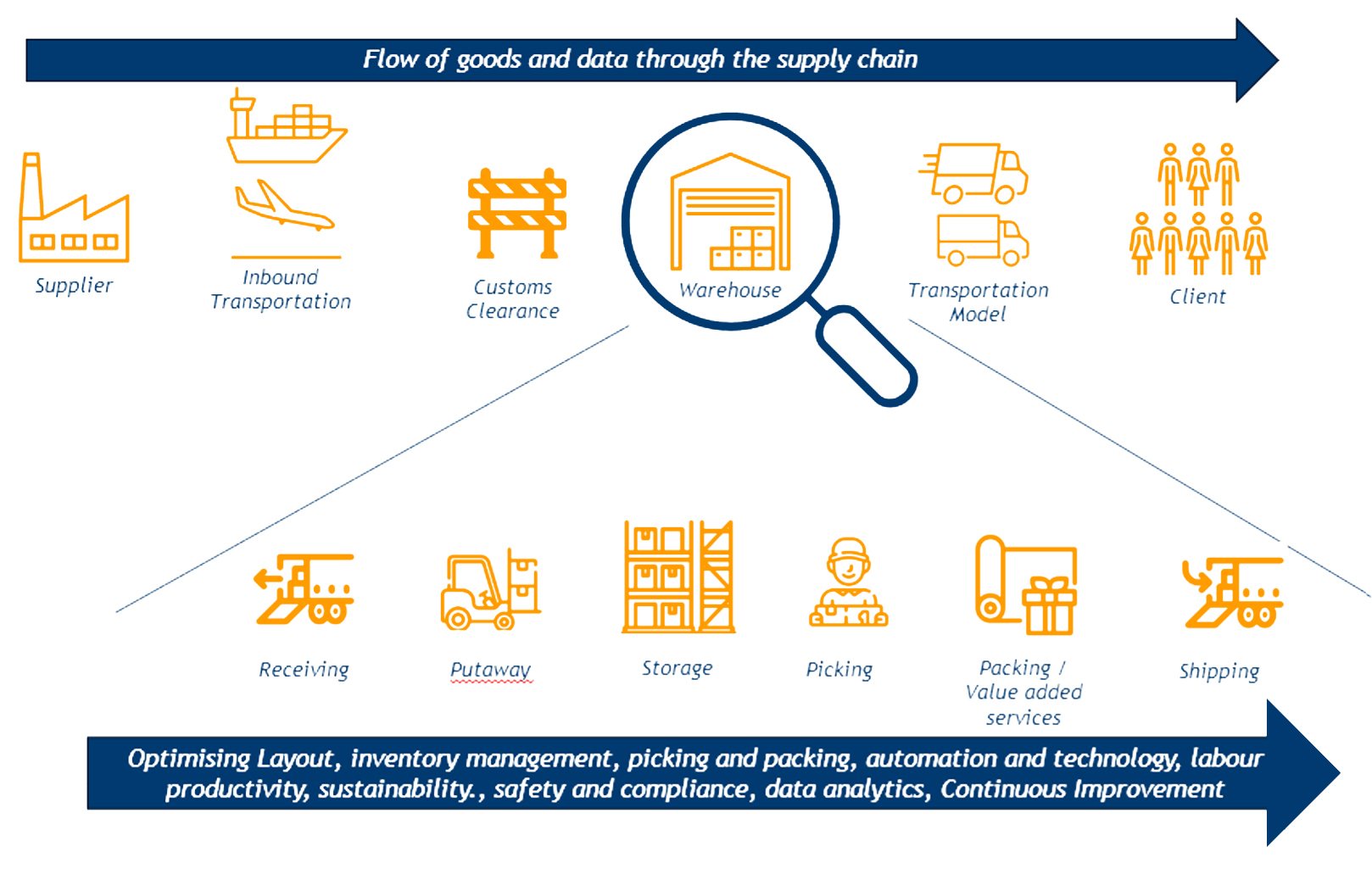 A well-designed supply chain, with an efficient warehouse, balances cost, quality, and service, benefiting both your business and your customers. High service levels from the supply chain can set you apart in the market. Conversely, high costs or inadequate service can harm your reputation and hinder business performance.
