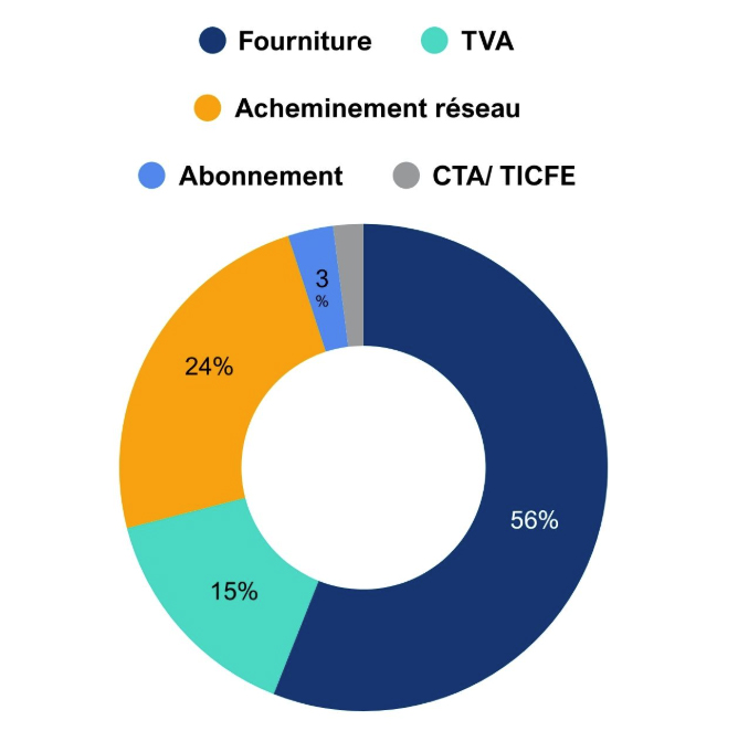 - Supplier costs, with a fixed portion for the subscription and a variable portion for the supply