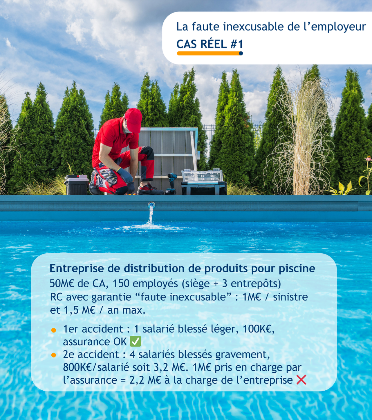 The employer has not taken all measures to avoid a danger to their employees, of which they were (or should have been) aware. This constitutes an aggravated accident at work, as the employer did not do everything they should have done to avoid it. This scenario is more common than one might think: failure to provide PPE or providing incomplete PPE, unmarked or partially erased floor markings, are all likely to reclassify a workplace accident as gross negligence on the part of the employer. The financial consequences are severe: doubling of the pension (permanent disability), recourse by the CPAM (French social security), substantial compensation, etc.👉 It is therefore essential, first and foremost, to be rigorous in terms of prevention: strict compliance with the Labour Code, provision of the necessary training, supply of appropriate PPE, combating discrimination or harassment, etc.💡 Secondly, ensure that your civil liability insurance includes a sub-cover called "inexcusable fault" with the right level of cover: being over-insured is pointless, but being under-insured will not help you either.