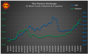 Kot poroča spletni portal PlasticsToday.com, »je podjetje PlasticsExchange izjavilo, da ohranja optimistično napoved tako za PP (polipropilen) kot za PE (polietilen) in pričakuje nadaljnje zvišanje cen v juliju: ponudba na prostem trgu je omejena, izvozno povpraševanje ne kaže znakov upadanja, na obzorju pa se lahko pojavijo motnje zaradi vremenskih razmer.«13,14 Proizvajalci so v juniju zahtevali tridesetcentno zvišanje cen PE, govorilo pa se je tudi o nadaljnjem zvišanju v juliju, pri čemer so kot glavni razlog navajali predvsem rastoče cene pomorskega prevoza. Omeniti je treba tudi, da so se podjetja BASF, Formosa Plastics, Bayport Polymers LLC in Dow Chemicals v začetku julija soočala z zaustavitvami proizvodnje.15